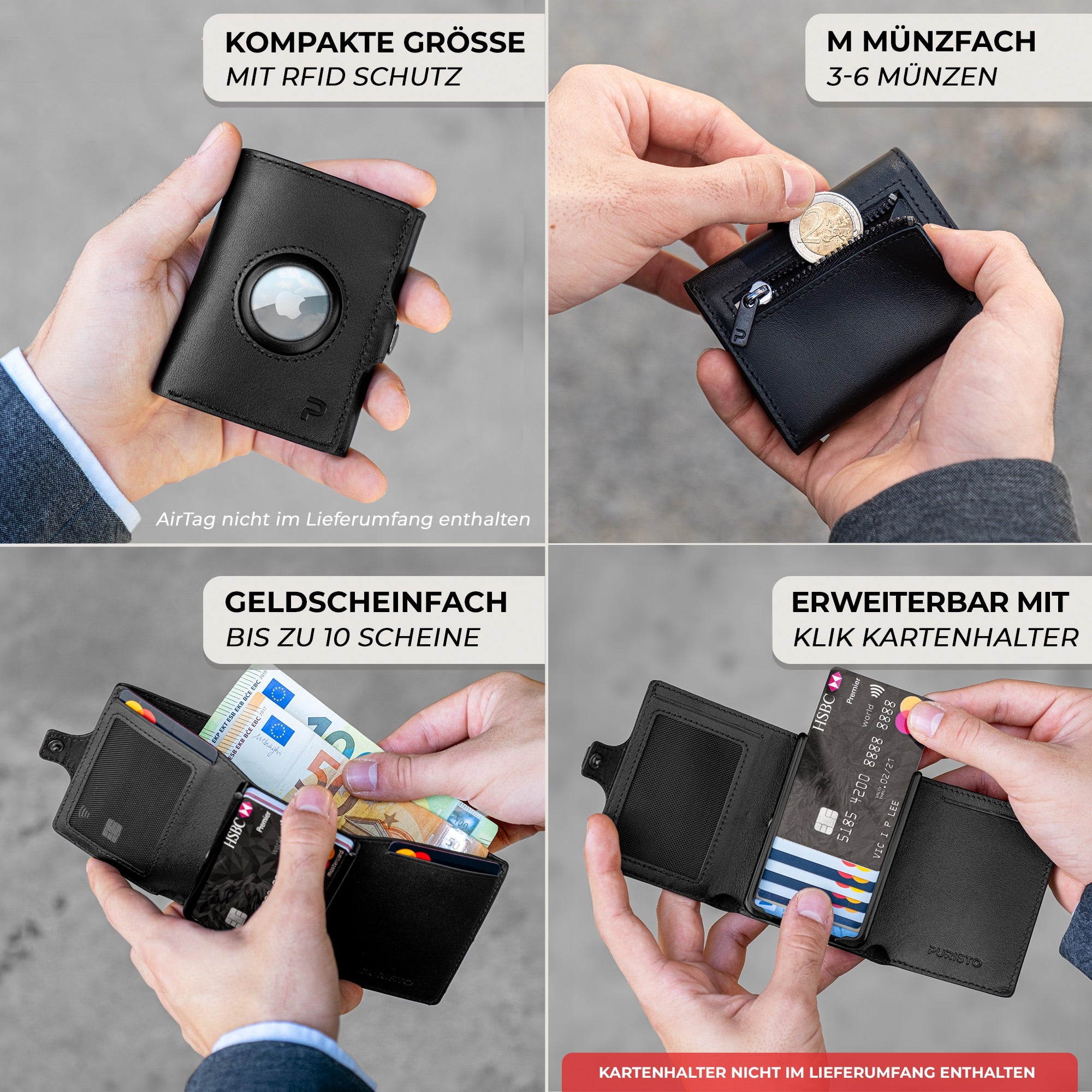 Die Varianten Ohne und Micro Münzfach aus der Kollektion "KLIK MINIMAL" sind mit KLIK Kartenhaltern für bis zu 8 oder 12 Karten kombinierbar (separat erhältlich).