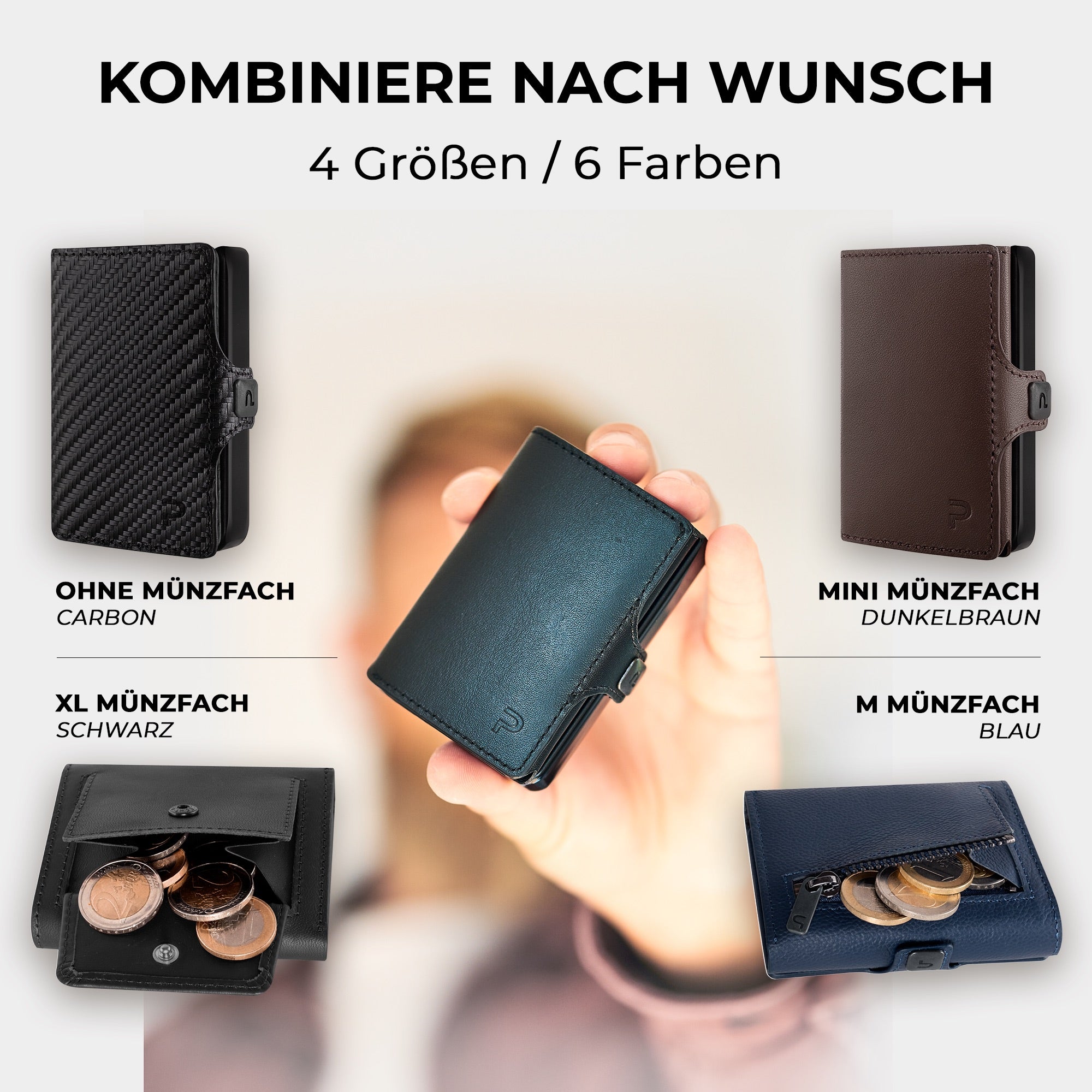 Gestalte dein Wallet flexibel: Ob ohne Münzfach oder mit unterschiedlichen Münzfachgrößen, passend zu deinem Stil oder Accessoires. Dein Wallet, so einzigartig wie du.